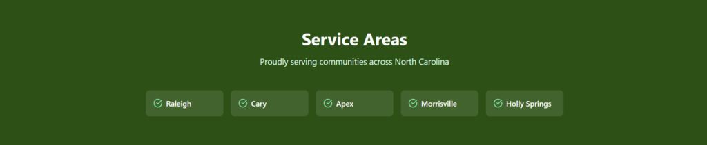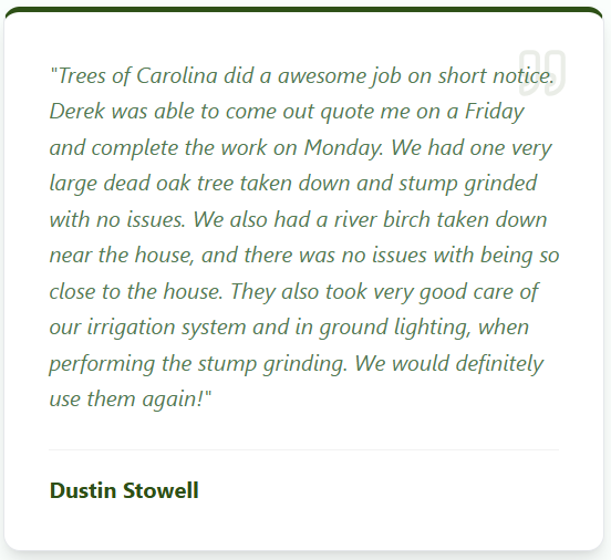 30 Years of Professional Tree Services in Raleigh, Cary, and Apex Since 1996 Safe, reliable tree removal, trimming, and storm cleanup Call Now to Get a Free Quote Our WorkSee our professional team in action Professional Team Stump Grinding Expert Tree Removal Our ServicesComprehensive tree care solutions for residential and commercial properties What Our Clients Say Don’t just take our word for it. Read what our satisfied customers have experienced. Why Choose Us Your trusted tree care professionals Check out our Socials! Instagram Facebook